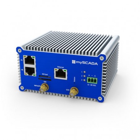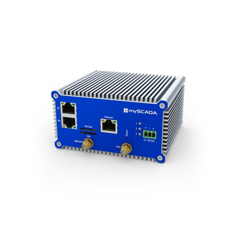 Diese kompakte myBOX-Lösunge umfasst die Funktionalität eines industriellen SCADA-Server, Kommunikations-Server, HMI-Visualisierungssystem, Switch, Router und 3G/LTE-Modem.
